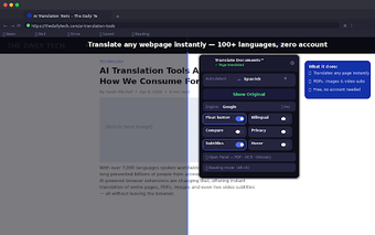Naast de basisvertalingen biedt Translate Documents functies zoals een offline woordenboek, een aangepaste glossarium voor specifieke termen en de mogelijkheid om vertalingen van verschillende engines naast elkaar te vergelijken. Gebruikers kunnen ook de leesmodus inschakelen om ongewenste advertenties te verwijderen en zich te concentreren op de inhoud. Deze extensie is volledig gratis en vereist geen registratie, waardoor het een toegankelijke keuze is voor iedereen die regelmatig met meertalige inhoud werkt.